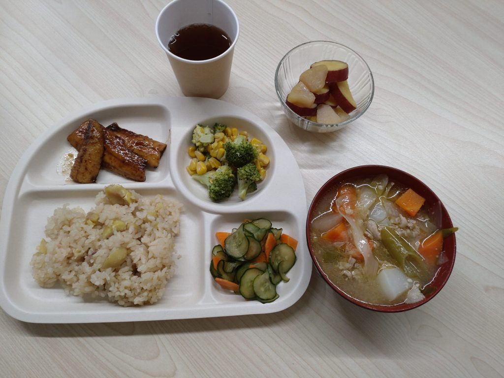 「さんまのかば焼き」「さつまいもとりんごのコンポート」と季節に合わせたメニューでした