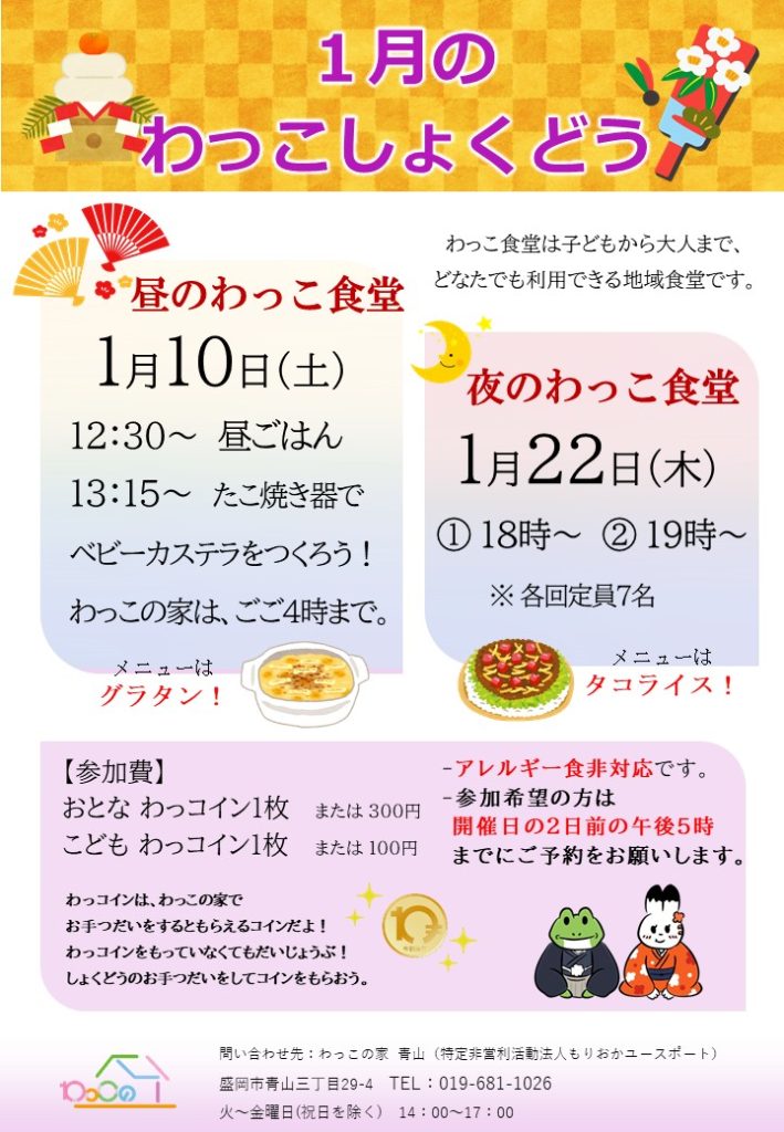1月「わっこ食堂」のお知らせ