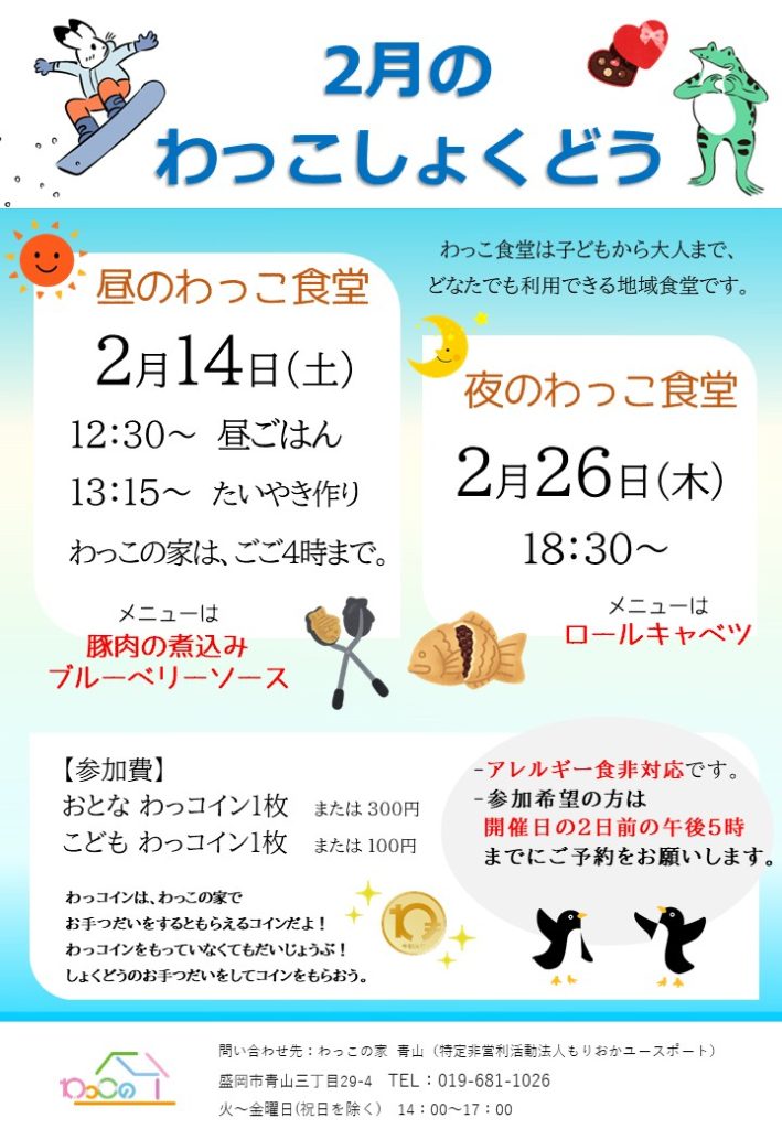 ※2026年2月より、夜のわっこ食堂は18:30~ 1回の開催となります。