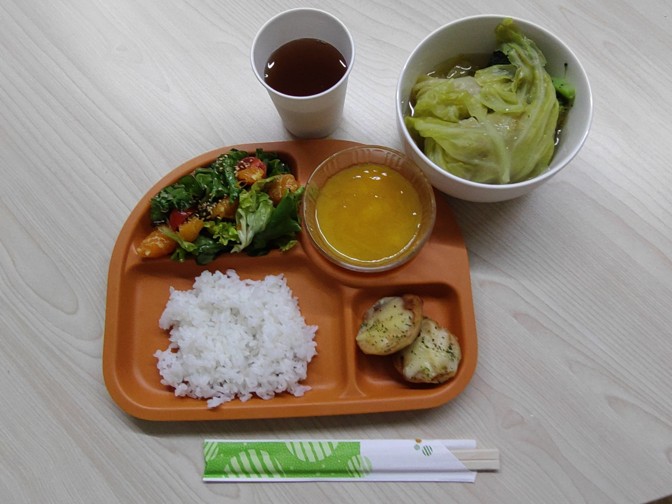 夜のメニューはロールキャベツ。野菜たっぷりのメニューでした。
